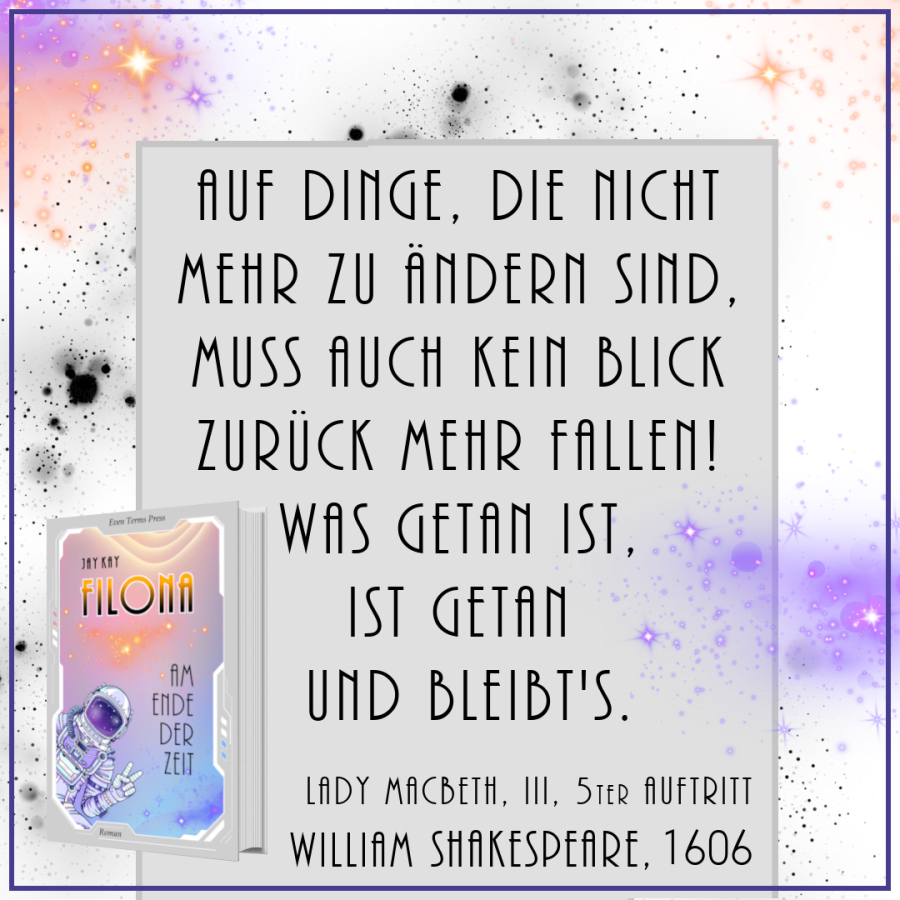 englische Dichter seine meisten Stücke verfasst hat. Das im Buch verwendete Zitat stammt aus dem Drama Macbeth von 1606 und Lady Macbeth verwendet es im fünften Auftritt des dritten Aktes. Ich habe